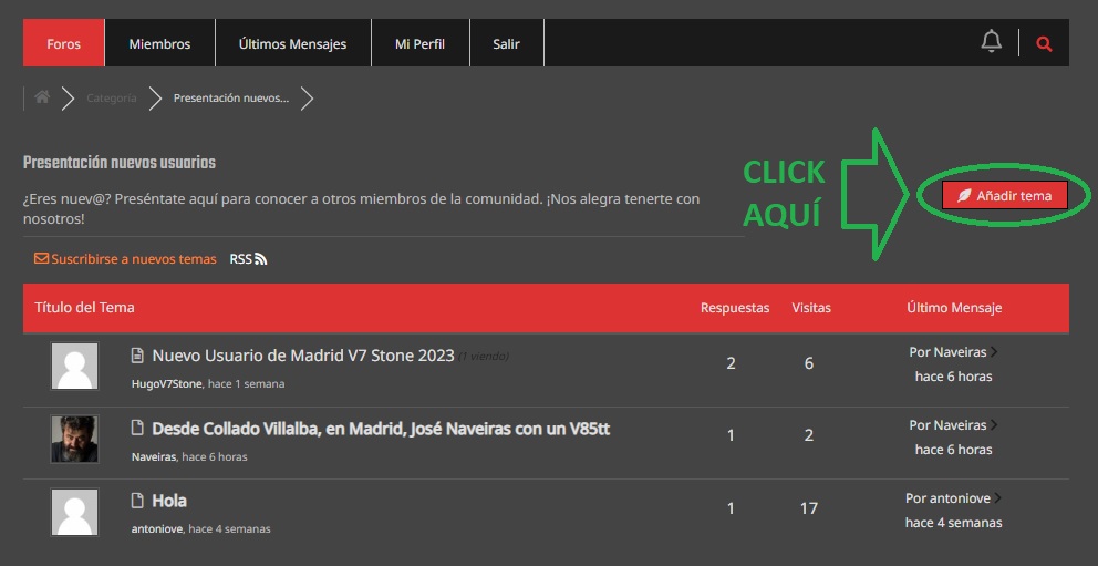 - Una vez en la sección deseada, busca y haz clic en el botón que dice "Añadir Tema" (Imagen 1). Esto abrirá una nueva ventana o cuadro de diálogo donde podrás redactar tu publicación (Imagen 2).